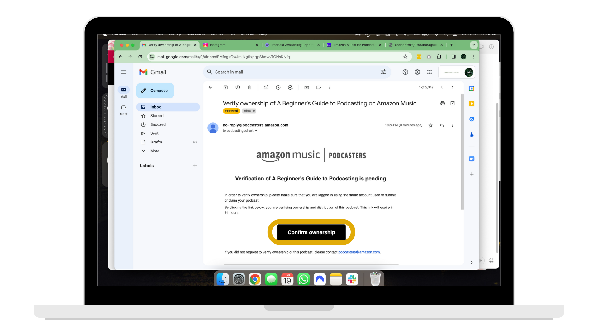 7. Head to your email and find the one from Amazon Music, click “Confirm Ownership.”