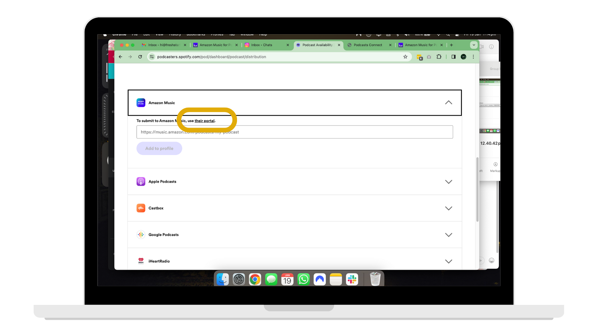11. This is the live page for your podcast on Amazon Music. Copy the URL at the top of your screen and head back to Spotify.